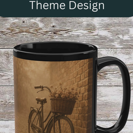 Bike with a Basket Ceramic Mug — 15oz Black Coffee & Tea Cup