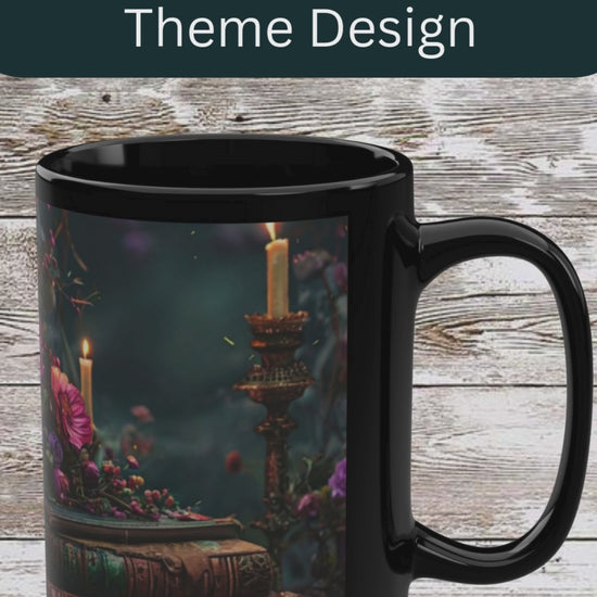 Coffee Mug - Candle and Books 15oz Ceramic Drinkware - Coffee Lover Gift Idea