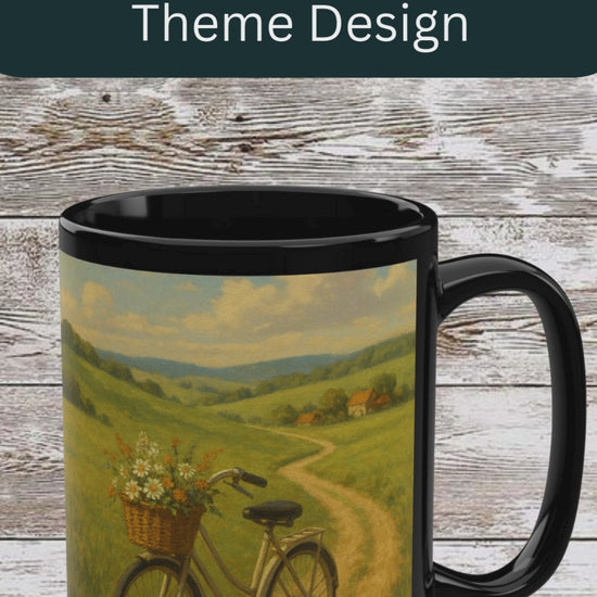 Countryside Bicycle 15oz Black Ceramic Mug — Retro Bike Coffee & Tea Cup