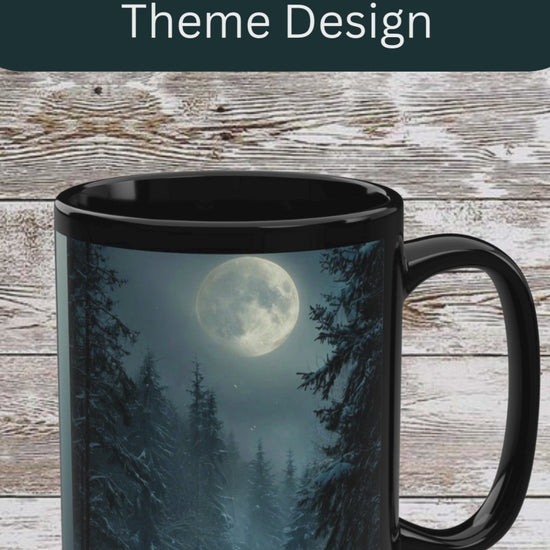 Moon Winter Trail Holiday 15oz Black Mug — Holiday Coffee & Tea Ceramic Cup