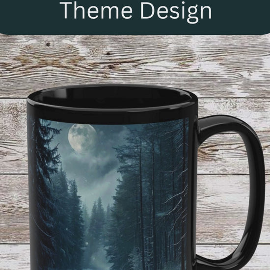 Moonlit Winter Trail 15oz Black Mug — Holiday Coffee & Tea Ceramic Cup
