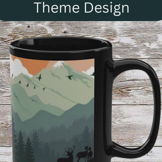 This Mountain Hiking Theme Black Mug is perfect for outdoor enthusiasts and nature lovers. With a glossy ceramic finish and a 15oz capacity, it's ideal for enjoying your favorite hot beverages. Makes a unique holiday gift for adventurers.