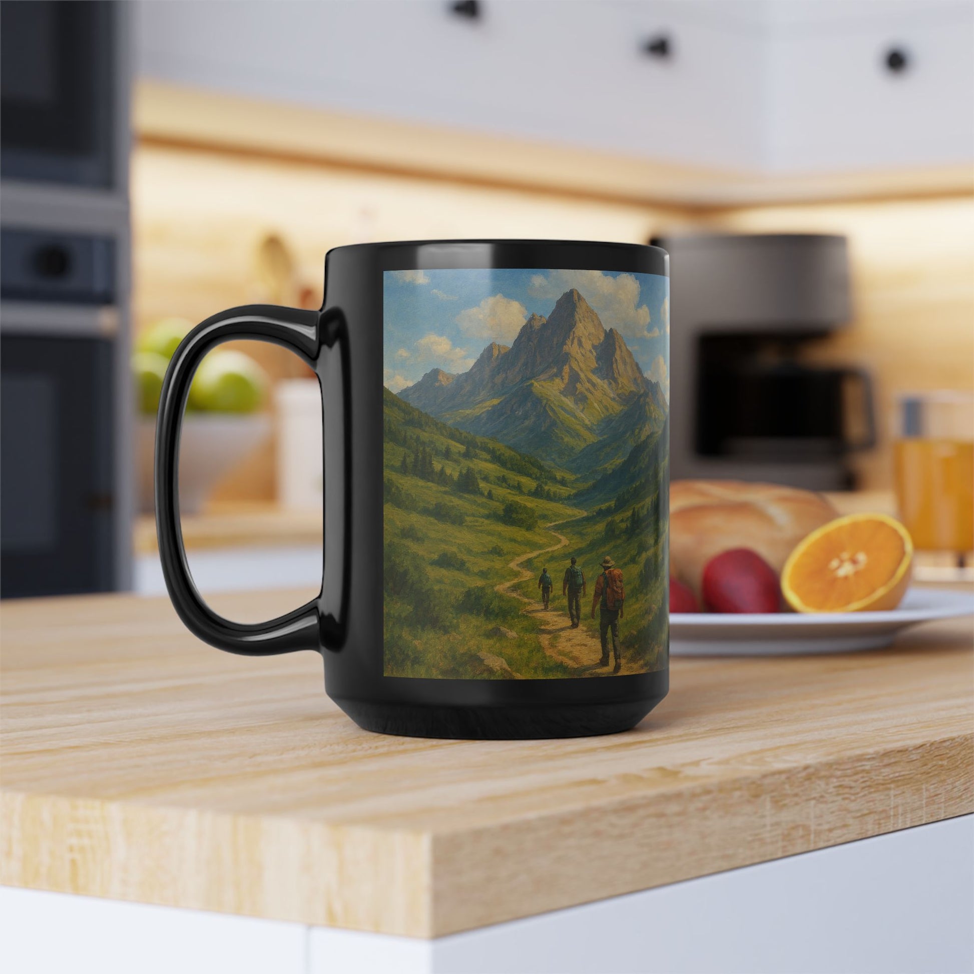 Mountains & Hills Hike Adventure 15oz Black Ceramic Mug