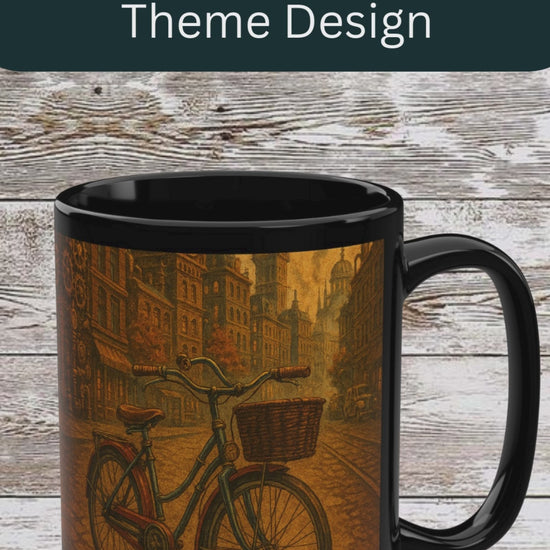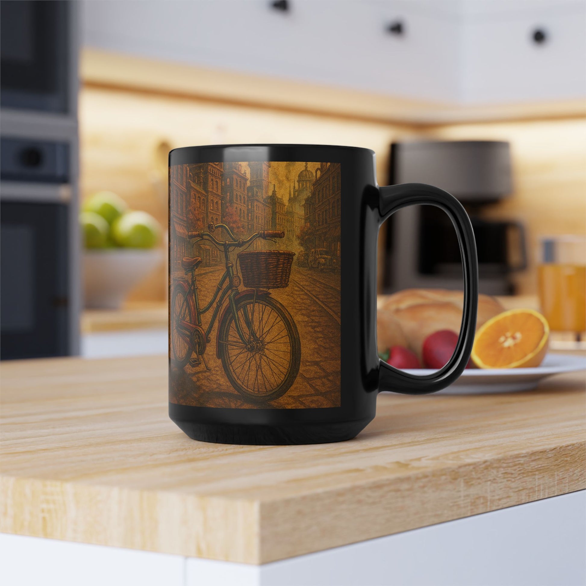 Steampunk Bicycle 15oz Black Ceramic Mug — Retro Bike Coffee & Tea Cup