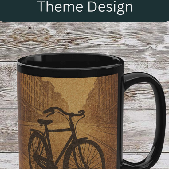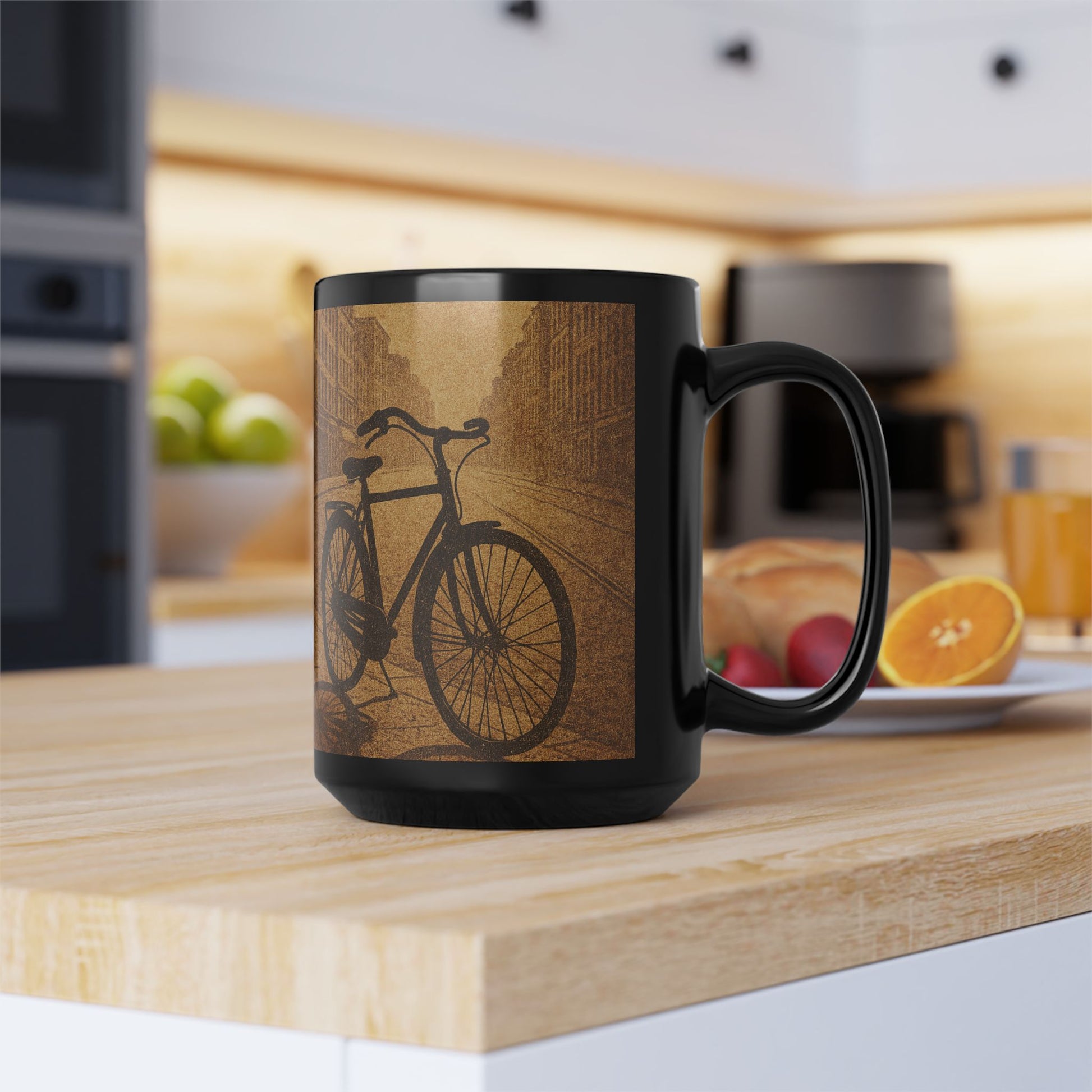 Vintage Bike 15oz Black Ceramic Mug — Retro Bicycle Coffee & Tea Cup