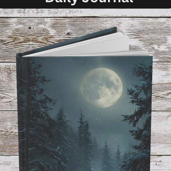 A quiet, moonlit planner that holds the hush of winter evenings and the steady rhythm of daily life. This hardcover journal lays flat on your lap as you sketch holiday menus, map out gift lists, or jot a midnight thought by lamplight. The matte cover feels soft under your fingers, while the sewn casewrap binding keeps pages secure yet flexible—ready for pages to be torn out when a list is complete or a recipe needs sharing. Bright, full-wrap colors give the moonlit artwork depth without glare. Use it across the season: calendar notes, meal plans, reflective journaling, or pocketing a printed recipe for later. For anyone who treasures deliberate planning and quiet creativity during the colder months, this journal becomes a small ritual — a steady page to return to between busy days and slow, snowy afternoons.